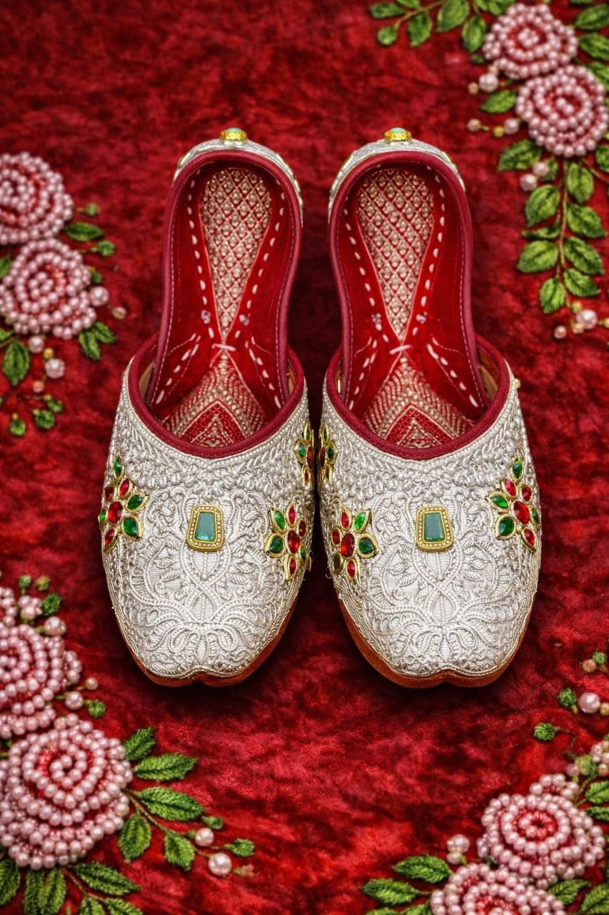 Designed for brides, wedding functions, festive occasions, and special celebrations, this jutti pairs perfectly with lehengas, sarees, and ethnic wear. Each pair can be customised in size, colour stones, and design preferences, making it truly exclusive and personal.