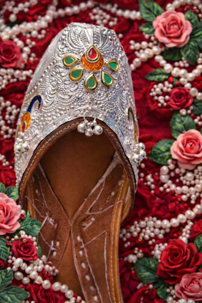 Designed for brides and festive occasions, this jutti pairs beautifully with bridal lehengas, sarees, and heavy ethnic wear, making it perfect for weddings, engagements, and traditional ceremonies.