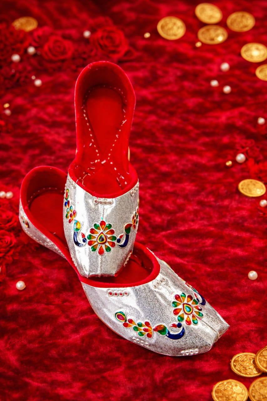 • Handcrafted silver-finish wedding mojris