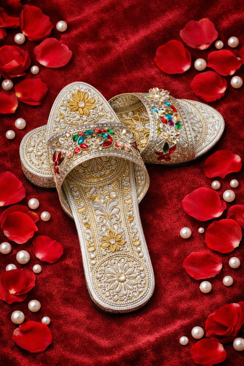 Perfect for weddings, festive occasions, bridal trousseau, and ethnic celebrations, this slider pairs beautifully with lehenga, saree, anarkali, sharara, and festive suits, adding a royal finish to every outfit.